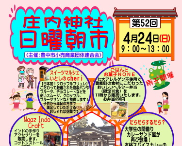 2022年5月15日(日)おいなりさんの第3日曜朝市を開催いたします 5月に入って早くも梅雨のようなお天気に・・・今年は梅雨入りが早いかもです。 豊中稲荷神社にて毎月開催の「おいなりさんの第3日曜朝市」は5月15日(日)に開催いたします。 14時までの開催予定ですが、状況により前後することがございますのでご了承ください。お時間ありましたらお気軽にお立ち寄りください。お待ちしておりますm(__)m