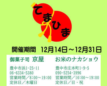 2022年12月18日(日)おいなりさんの第3日曜朝市を開催いたします 12月の「おいなりさんの第3日曜朝市」は18日に開催いたします。 9時から14時ごろまでの開催予定ですが、状況により前後することがございますのでご了承ください。 また、雨天決行ですが、お店さんによってはお休みされる場合もございます。 早いもので今回が2022年最後の「おいなりさんの第3日曜朝市」、お気軽にお立ち寄りくださいね! お待ちしておりますm(__)m