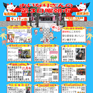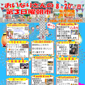 2023年8月27日(日)庄内神社・日曜朝市を開催いたします 8月の「庄内神社・日曜朝市」は27日に開催いたします。 13時頃までの開催予定ですが、状況により前後することがございますのでご了承ください。 また、朝市自体は雨天決行ですが、お店さんによってはお休みされることもございます。 8月も下旬になりましたが、まだまだ暑い日が続きます。熱中症や紫外線にご注意ください。 どうぞお気軽にお立ち寄りくださいね! 皆様のお越しをお待ちしておりますm(__)m