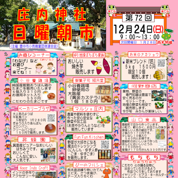2024年最初となります 1月の「おいなりさんの第3日曜朝市」は21日に開催いたします。