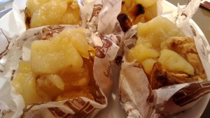 芋ぎょうざ団子の甘酢 松ですヽ(^-^ ) ぎょうざ工房ひげさんのお惣菜です~~(^O^) 見た目、肉団子でしょー。肉団子の甘酢と思って食べると、もちもちのひげさんのぎょうざ。 芋団子とぎょうざのコラボ、(*゚ー゚)v美味しくて、すごーく不思議な感じのするお惣菜です。