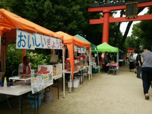 2016年7月17日(日)おいなりさんの第3日曜朝市の様子です 朝方は雨がポツポツと降って、先月の二の舞か…と心配しましたが、その後何とかお天気も持ち直してほっとしました。 今回初出店のダリア雑貨店さん、un jourさんの雑貨は参道ではとても目を引くようで、たくさんの方が立ち止まってご覧になっていましたよ。 久しぶりに出店された服部阪急商店街の富貴屋さんは磯部焼きの実演販売をされていました。お餅好きの方からは大好評! 出店者の皆さま、お越しくださったお客様、ありがとうございました! 次回は8月21日(日)に開催いたします。暑い中ですが皆さまのお越しをお待ちしております!