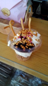 す~~っとした 本町 ヤムヤムクッキーさん 疲れていて のども渇いたな~と思ったら、ヤムヤムさんで パフェの可愛いポップを発見(^O^) 頼みました! アイス以外は 手作りだそうです、ジャムもクッキーも美味しくて、す~~っとしちゃった(^ー^* ) 人気者の動物クッキーも並んでいました。