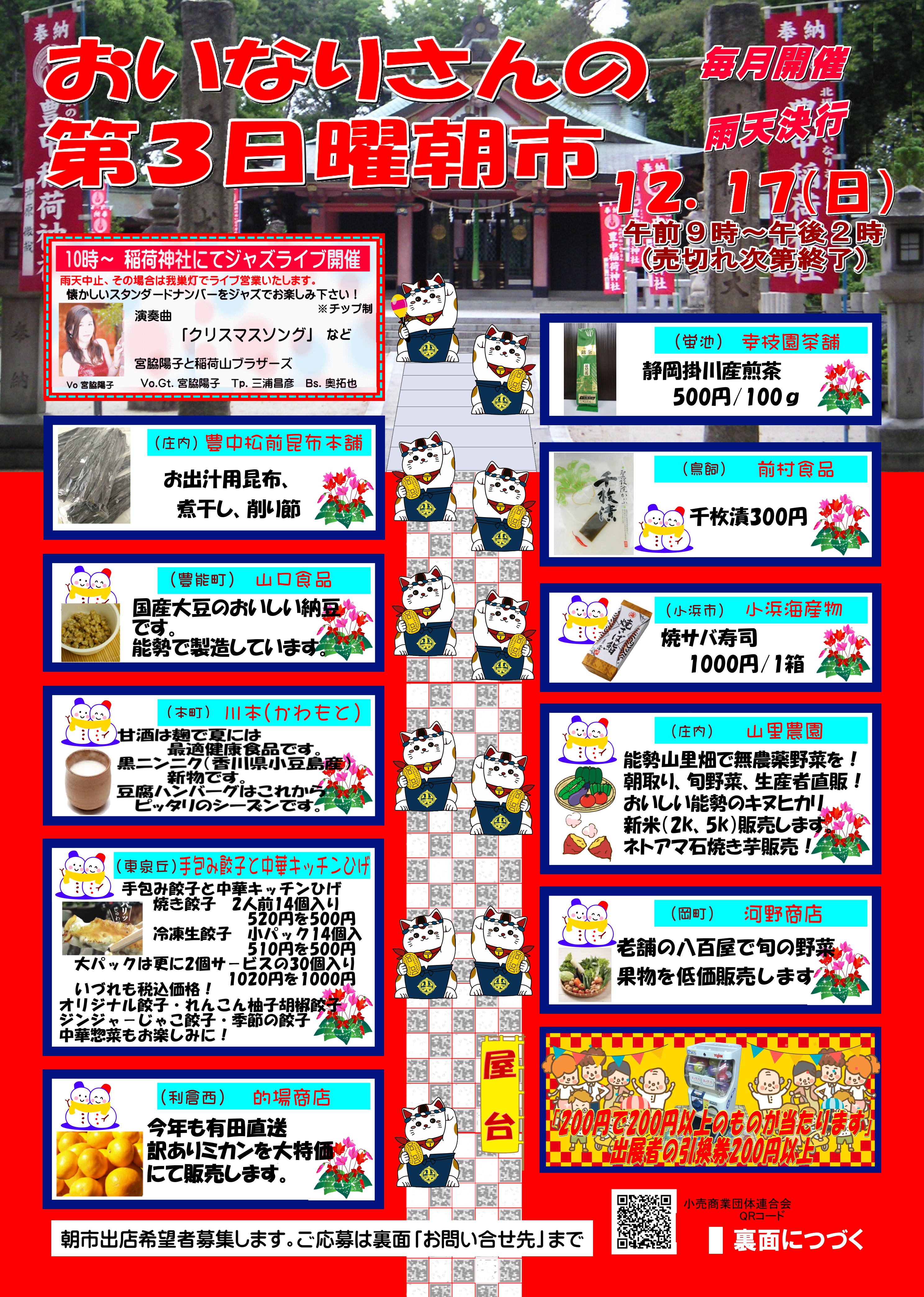 2017年12月17日(日)おいなりさんの第3日曜朝市を開催いたします!