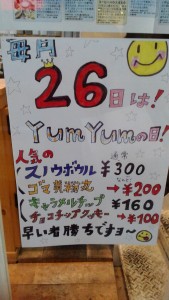 26日はヤムヤムの日 豊中本町 ヤムヤムクッキー 26日はヤムヤムの日です(*゚ー゚)v、今回は人気の豊中ドーナツが100円です~~ 他にもお得なお品がありますよ~。 数量限定です! パウンドケーキやアイス、美味しい(^~^)が いっぱいです! お待ちしております!(*^▽^*)