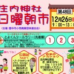 2021年12月19日(日)おいなりさんの第3日曜朝市を開催いたします あっという間に12月(師走)です! 気ぜわしい毎日ですが、 新し歳を新しい気持ちで迎えられるよう! 今月も朝市元気に開催します! ぜひ、お越しくださいね! お待ちしておりますm(_ _)m