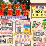 2022年11月20日(日)おいなりさんの第3日曜朝市を開催いたします 11月の「おいなりさんの第3日曜朝市」は20日に開催いたします。 9時から14時ごろまでの開催予定ですが、状況により前後することがございますのでご了承ください。 また、雨天決行ですが、お店さんによってはお休みされる場合もございます。 お天気が心配なところですが、お時間ありましたらお気軽にお立ち寄りくださいね! お待ちしておりますm(__)m